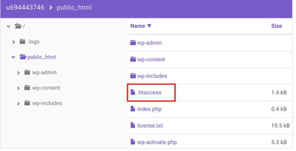 - Next, go to the public_html directory and look for .htaccess file