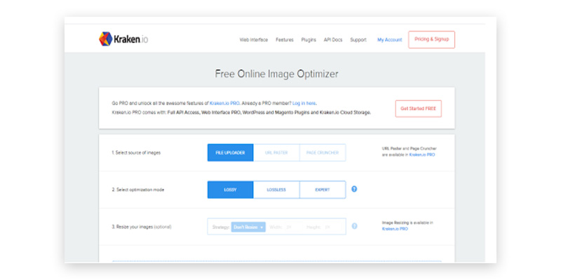 3. Kraken.io --- “optimize your files for lowest file size”