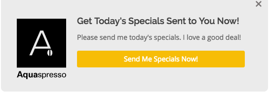People love exclusiveness. And in this example that we will see of the CTA of Aquaspresso we will see how they have smartly bartered the email address of their customer with giving them info on specials.