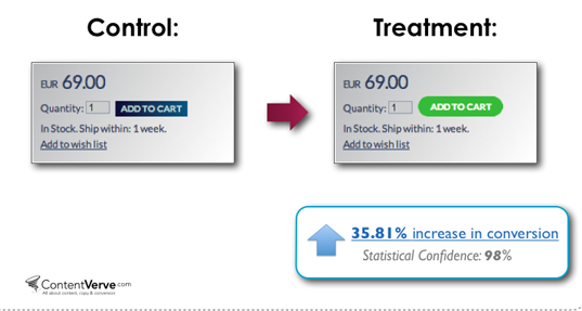 Anything that puts you apart helps even a different shape of the button. This is because your visitor craves for novelty. Here is an example of ContentVerve wherein they have used a rounded box instead of the normal rectangle.