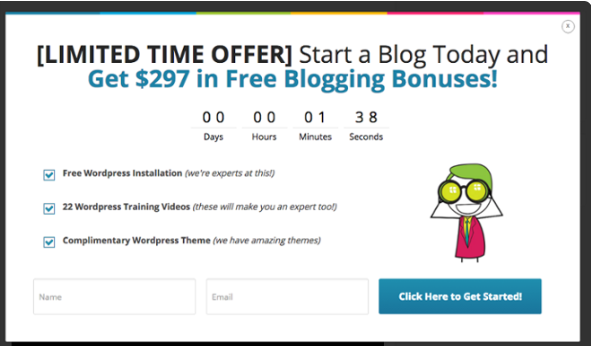 Nothing gives you a chance to have more leads than creating a sense of urgency by placing a timer on the CTA button. Here is a good example of that, a screenshot taken from the website of WordPress-