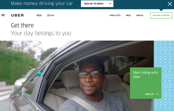 You can also garner the power of multiple CTAs on one page but the challenge here is that you need to be extra cautious to balance it properly. Uber is doing a wonderful job with that take a look-