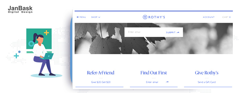 Many of your customers or users wish to know about anything new at the earliest opportunity to stay up to date and that is the bait you can use to lure them. Here is an example of Rothy’s website