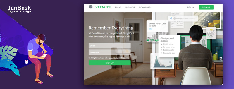 Here is an cta examples of Evernote that is using a very simple CTA ie Sign up but it is attractive due to its good color combination and matching with the headline